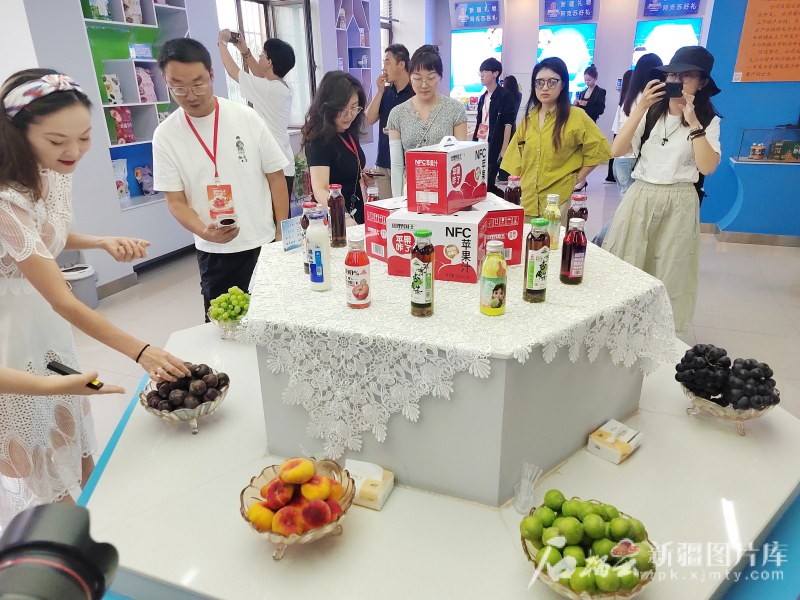 7月28日,采访团一行在阿克苏市电商创业孵化基地展厅参观。 当日,“石榴花开 籽籽同心 铸牢中华民族共同体意识”网络主题活动一行,来到阿克苏市电商创业孵化基地、阿克苏丰瑾现代农业发展有限公司苹果优质高效栽培示范基地,了解当地利用“电商+”模式,持续为社会输送优秀电商人才,和他们将当地特色农产品销往全国,为农民增收的故事。