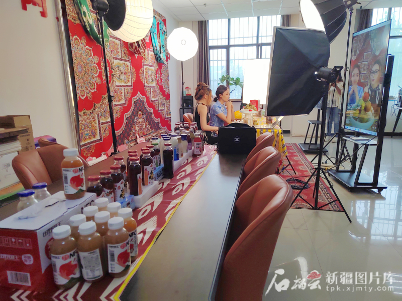 7月28日,电商在阿克苏市电商创业孵化基地直播销售各类当地农副产品。 “去年我们公司带动百余户种植户销售农产品上千吨,主要涵盖阿克苏的冰糖心苹果、纸皮核桃、吊干杏、马牙瓜子以及大枣等特色农产品,目前阿克苏的电商业态发展呈现较好的趋势,今年的销售还会有突破。”阿克苏市电子商务协会会长、阿克苏李小疆农业科技有限公司负责人李博介绍。