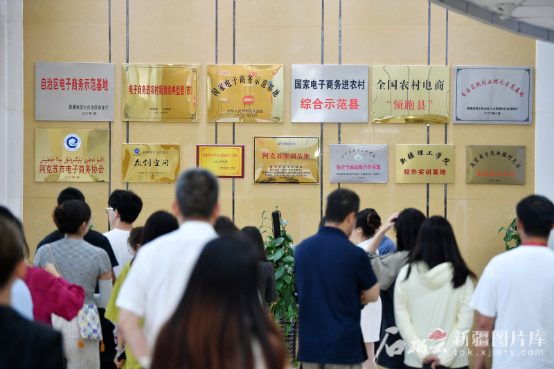 7月28日,采访团一行在阿克苏市电商创业孵化基地参观。