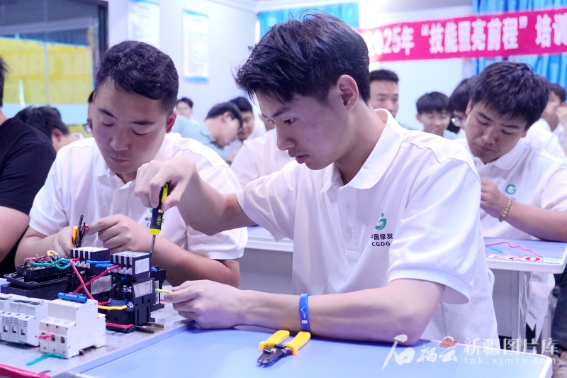 8月11日,乌鲁木齐市达坂城区“技能照亮前程”企业新型学徒制培训班上,学员们正在进行风电、光伏运维技能实操训练。加尔肯别克·特尼斯别克摄 此次培训紧扣企业需求,采用“岗位需求+技能培训+评价”的闭环模式,依托国家相关政策,培训全程免费,既为企业节省了培训成本,也让学员切实掌握岗位核心技能,实现“订单式”培养,大大缩短从培训到上岗的衔接周期。 乌市达坂城区人力资源和社会保障局相关负责人表示,接下来将会扩大新能源、先进制造等重点领域的技能培训覆盖面。针对2025年企业新招用的高校毕业生,还将推行“岗前培训+学徒制”机制,提升培养质效,尽快满足岗位需求。