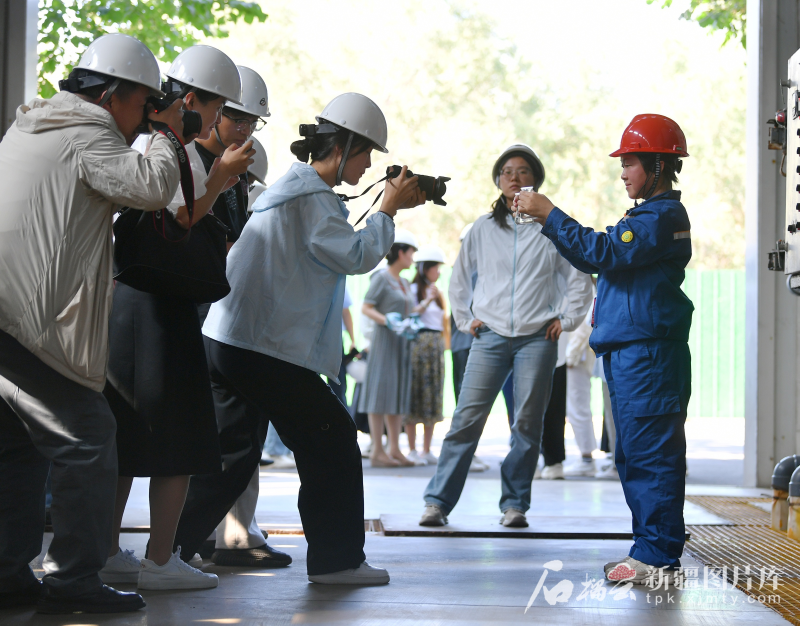 8月9日,采访团记者在拍摄深度处理之后的水。新疆八一钢铁集团有限公司为提高水的利用率,对用水设备进行技术改造,提升各工序用水的精细化管理水平,吨钢耗新水量逐年下降。