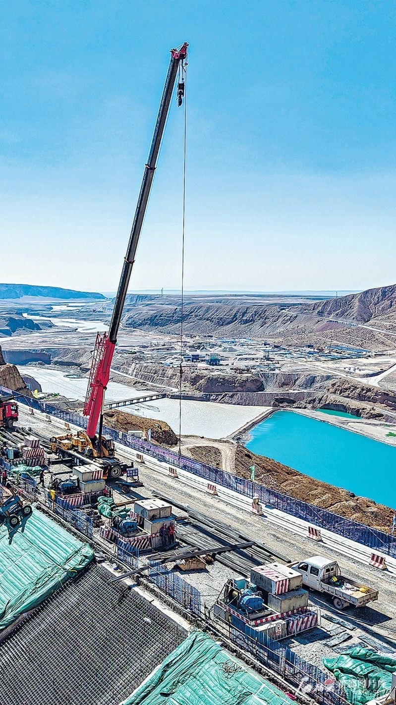8月9日,工人在位于乌什县境内的大石峡水利枢纽工程建设现场作业。该工程将于2026年完工,届时每年将向塔里木河生态输水34.2亿立方米,改善塔里木河干流生态环境状况,有效缓解灌区农田春灌秋灌缺水问题。