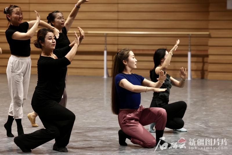8月15日,博州歌舞团演员正在排练舞蹈。 这场跨越千里的艺术对话,不仅让黄梅戏在西北边疆扎下了根,更谱写了各民族文化交流互鉴的动人乐章。