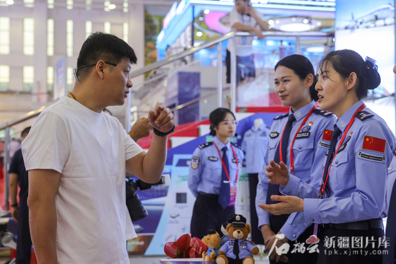 8月15日,在第十五届喀交会“中国移民管理”展区,民警与观众沟通。李晨摄 “您订购的这批货,通过红其拉甫口岸的绿色通道运回国最方便”“240小时过境免签政策适用口岸和停留活动区域包括……”8月16日,喀交会第二天,在“中国移民管理”展区,不断有中外参展商和观众前来咨询通关事宜,现场解说人员热情接待,详细回应。 8月15日至19日,第十五届喀交会在喀什国际会展中心举办,来自40个国家和地区的181家境外企业、1120家国内企业共赴开放之约。 新疆边检总站首次亮相喀交会,以“便捷服务提升出入境体验、高效举措促进开放交流”为主题,精心设置了政策咨询区、设备展示区、互动体验区等多个功能区域。通过“线下展示+云端解读”相结合方式,向参展商、采购商及观众宣介服务政策和便利举措,推介国家移民管理机构“12367”热线服务,现场进行出入境政策法律答疑。