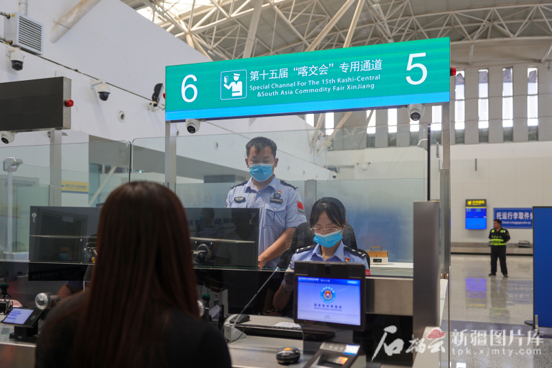 8月15日,在喀什徕宁国际机场航空口岸,喀什出入境边防检查站为旅客办理入境手续。李晨摄 新疆边检总站驻喀交会负责人介绍,此次喀交会期间,新疆边检总站将国门口岸的政策红利延伸至展会现场,全疆各口岸为中外参展商及团队旅客开通专用通道,配备多语种引导人员,确保人员安全、高效通关;展品通道则整合了边检、海关、安检等多部门查验流程,实现“一次申报、联动查验”,确保展品快速入馆。