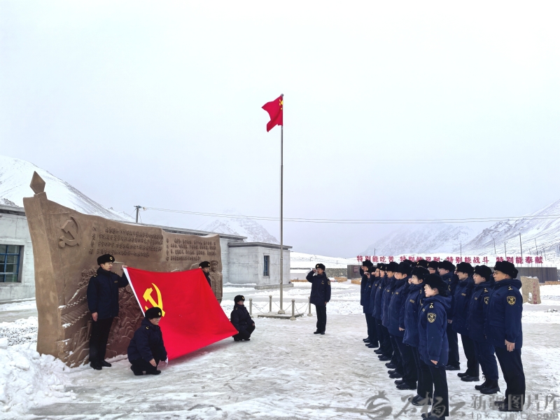 2024年12月28日,红其拉甫海关在水布浪沟开展“重温入党誓词”主题党日活动。红其拉甫海关供图