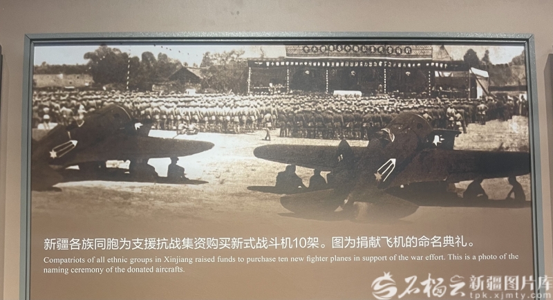 “这张照片背后,是新疆各族同胞与全国人民同呼吸、共命运的见证。”纪念馆讲解员指着照片向参观者讲述:“当时新疆虽然远离正面战场,但各族人民用自己的方式支援抗战。1938年8月24日,10架‘新疆号’飞机飞往抗日前线,参加了武汉保卫战。”