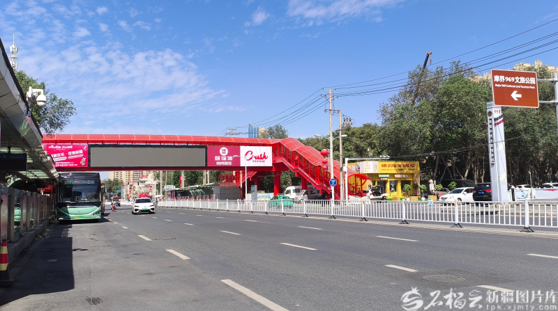 乌市水磨沟区北郊客运站附近的彩色天桥外观。石榴云/新疆日报记者 胡大敏摄 “天桥北面已焕然一新,走起来很舒服,色彩搭配也很合适,希望南侧能尽快修好,方便我们出行。”正走在天桥上的乌鲁木齐市民刘俊芳说。 天桥施工单位乌鲁木齐奥斯利防腐涂料有限公司负责人闫水法介绍,受天桥维修建设方委托,一周前,他们对天桥楼梯、桥面等进行施工,计划9月8日前完工,届时,市民便可正常通行。