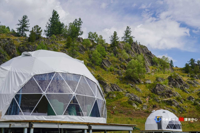 8月27日晚,暮色浸染哈巴河县那仁草原时,云端牧场客栈的十座星空房宛如散落山脊的水晶匣。2700米海拔的苍穹褪去白云,露出靛青底色,落地窗把连绵的阿尔泰山框成巨幅油画,远处的喀纳斯湖在晚霞中划出美丽的弧线。“云牧主”们裹着羊毛披毯蜷进星空床榻,看着远处的牧羊犬在牧场奔跑,惊起毡房旁的夜鸟。远处传来冬不拉琴弦的震颤,混着现熬奶茶的香甜渗入房内,望远镜的目镜中,刚被认领的阿勒泰羊在北斗星下蜷成白色绒球……