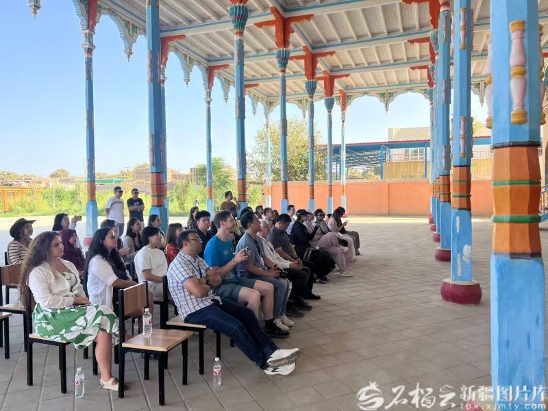 9月5日,留学生在吐鲁番市鄯善县鲁克沁镇木卡姆非遗传承中心欣赏表演。石榴云/新疆日报记者 司路路摄