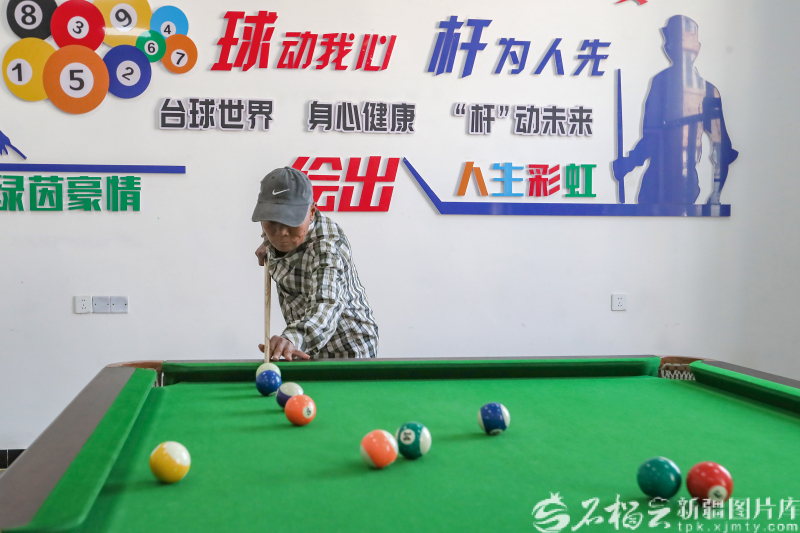 9月5日,一位老人在吐鲁番市高昌区艾丁湖镇农村幸福大院打台球。 作为湖南省对口援疆重点民生工程,艾丁湖镇农村幸福大院于2023年11月建成投用,总投资600万元,由湖南省全资援建,建筑面积达1587.15平方米,设置床位40张。这里不仅是老人的“安居之所”,更是集生活照料、医疗护理、文化娱乐、心理关怀于一体的综合性养老服务平台。院内配备餐厅、活动室、爱心发屋等设施,并严格实施“五个一”服务标准:每日一次健康监测、一次床铺整理、一次环境消杀、一次心理关怀、一次膳食指导,让老年人在这里过上了舒心的晚年生活。 阿不力孜是幸福大院的常客。作为艾丁湖镇庄子村村民,他定期在这里享受健康体检、营养餐食,还能在活动室下棋、在支边馆追忆往事。“以前子女在外忙碌,自己在家孤单,现在这里啥都有,日子过得很好!”老人感慨道。
