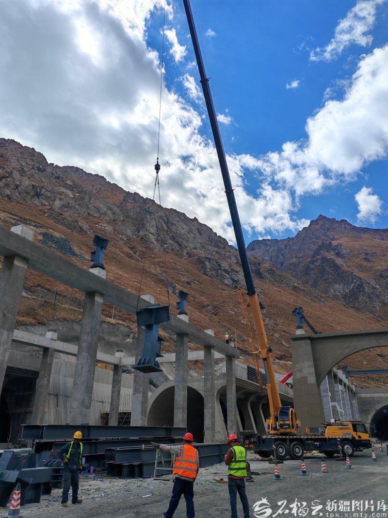 9月12日,工人在天山胜利隧道进口端洞口吊装钢结构。石榴云/新疆日报记者 逯风暴摄 行至天山胜利隧道进口端,右侧山体上,工人正在框格梁区域浇筑混凝土,这一个个“口”字型的框格梁,起到防护山体的作用。隧道口,工人们正操作塔吊吊装钢结构,这些钢结构被焊接至隧道棚洞的顶端,构成中式的屋顶。 天山胜利隧道全长22.13公里,是乌尉高速公路节点工程,也是世界上最长的高速公路隧道。隧道已于去年底贯通,目前建设者正在加紧隧道内机电、交通安全设施、亮化等附属工程施工。 “洞内二次衬砌、路面主体摊铺等工程已经完成,正在加紧洞内景观喷涂施工。”中国交建新疆乌尉公路包PPP项目乌尉土建第五标段项目部党支部书记鲁泽建说。 走进隧道,工人有的在安装保温设施,有的在向墙面喷涂油漆料。目前隧道已进入“精装修”尾期,一路向南,记者看到,隧道顶部采用了蓝天白云和星空等设计,以缓解因超长公路隧道长时间驾驶造成的视觉疲劳和紧张情绪,两边墙面上有天山冰川、高山湖泊、沙漠胡杨等图案,行走其中,视觉体验极其惊艳。 从隧道内穿出,就到了天山南部的和静县,洞口处,数名工人在安装棚洞的钢结构。 “今年是自治区成立70周年,全体建设者加紧施工,争取隧道内部装饰于月底完成,为年底项目全线通车奠定基础。”中国交建新疆乌尉公路包PPP项目乌尉土建第六标段项目部副经理李德增说。 乌尉高速公路全长319.7公里,起于乌鲁木齐市G30线仓房沟互通立交西侧,止于尉犁县东侧琼库勒村。各路段中,库尔勒南互通至尉犁段、巴仑台至库尔勒段已通车。根据施工安排,到今年年底,全线将实现通车,届时乌鲁木齐到库尔勒的驾车时长将从7小时缩短到3小时。
