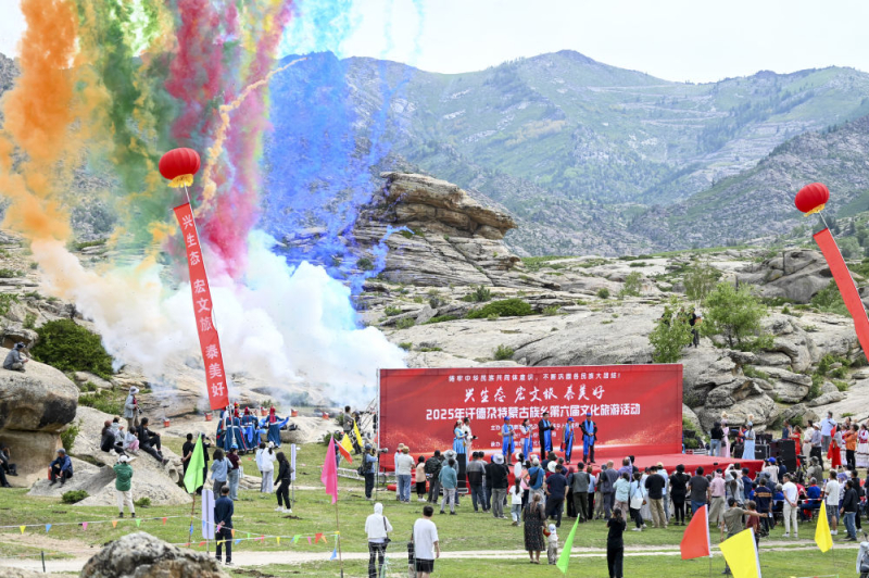 这是2025年5月24日拍摄的新疆阿勒泰市汗德尕特蒙古族乡第六届文化旅游活动现场。新华社记者 王菲 摄 阿勒泰还借助沿边口岸优势,开行多趟旅游专列与包机,组织跨境旅游,举行环阿尔泰山冬季运动会等体育赛事,吸引国内外游客深度探索阿勒泰,进一步打响“净土喀纳斯·雪都阿勒泰”品牌,让绿水青山成为各地游客交往交流的“会客厅”。 “阿勒泰的山水声名远播,但这里不只有自然风光,还有深厚的文化底蕴。我们将进一步利用好文旅资源,为海内外宾客做好服务。”阿勒泰地区文化体育广播电视和旅游局局长德丽达·那比说。(记者胡虎虎、熊丰)