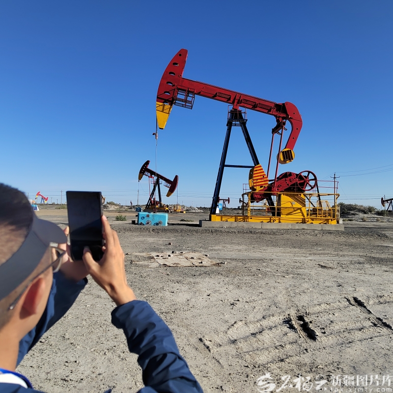 9月12日,“砥砺奋进七十载 天山南北谱华章”大型集中采访活动采访团成员在新疆油田公司采油二厂陈其亮班组采油作业区拍摄抽油机。 当日,“砥砺奋进七十载 天山南北谱华章”大型集中采访活动采访团一行来到位于克拉玛依市的新疆油田公司采油二厂,了解边疆地区最大采油厂从开启找油史到创造多项产油纪录,累计产油超亿吨,实现高质量发展的情况。 “在如今数字化、自动化发展的要求下,我们一线石油工人希望通过过硬的技术,让抽油机有100次低头,就有第101次抬头,使这口井一直运行,把地下的原油抽出来。”新疆油田公司采油二厂陈其亮班组班长陈其亮说。