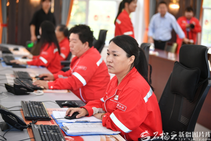 9月12日,工作人员在新疆油田公司采油二厂生产指挥中心查看设备运行情况。