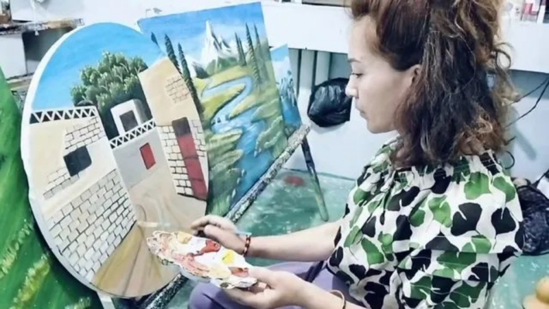 哈密市伊州区回城乡农民画创作者古丽苏木·克然木的作品《贡瓜飘香》。哈密市伊州区融媒体中心供图 回城乡建国村党总支副书记阿丽努尔・依布拉英告诉记者,依托阿勒屯古街独特的文旅资源,村“两委”积极引导村民盘活庭院,常年开展农民画创作技艺培训等工作,深度挖掘非遗技艺,大力发展庭院经济与文旅融合产业。“一幅农民画,不仅是对乡村振兴成就的记录,还能让村民在家门口实现创业就业,丰富了古街旅游业态,提升了游客体验。”阿丽努尔・依布拉英说。 伊州区回城乡向来是人文荟萃之地,农民画氛围浓厚。为鼓励更多农民参与绘画创作,形成特色产业,带动农民增收致富,自20世纪80年代以来,回城乡多次开设农民绘画培训班,培养出了100多名优秀的农民画创作者。 “从2002年开始,我们每年都要举办农民画展,并邀请专业教师开设培训班。回城乡的农民画创作者,年年都在疆内外的农民画展上获奖。”哈密市伊州区回城乡文体广电旅游服务中心主任米娜瓦尔·阿布都说。 “阿勒屯古街墙上都是我们农民自己画的画,我们要画出自己的幸福生活。”回城乡农民画创作者古丽苏木·克然木说。 9月15日,在回城乡新时代文明实践所,农民画创作者茹仙古丽·阿不力米提在教村民绘画。她从事绘画六七年,多次获奖。茹仙古丽说,现在来阿勒屯古街旅游的人多,村民从中看到了商机,越来越多的村民开始学习农民画创作技艺。她说:“我自己也要提高绘画水平,画出哈密的美、新疆的美,展现给更多人。”
