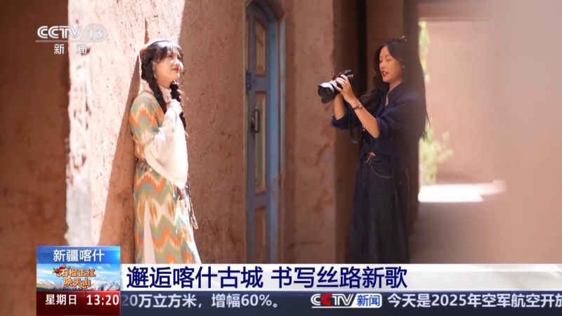 小虎说暑期游客多的时候,她一天可以拍8至12个人。 小虎的拍摄风格细腻、大胆,她懂得如何利用古城最天然的色调和建筑风格为游客带来情绪价值,她的摄影视角收获了不少慕名而来的各地游客。曾经的一次喀什古城之旅,让小虎从游客变成了住客。 2019年开始,旅拍师这样一个职业在喀什古城悄然兴起,目前注册的旅拍店145家,从业人员800人左右,也让像小虎这样的年轻人留在这里,在他们的镜头里也能感受到古城每一天的变化。