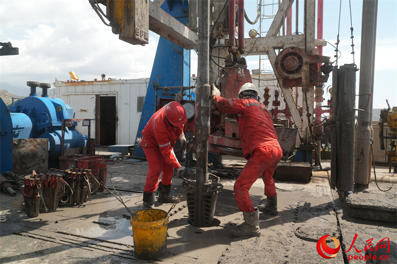 柴探2井,工人们正在提、下钻。人民网记者 唐宋摄 天山脚下,乌鲁木齐市达坂城柴窝堡凹陷北缘油气资源潜力评价项目正在加紧推进,位于三个山的柴探5井,钻机正以每分钟5至10厘米的速度在岩层中掘进。 “年初,乌鲁木齐市达坂城一带油气会战正式拉开序幕,我们的目标是支撑一个新的油气资源接续基地建设。”乌鲁木齐地质大队油气勘查院院长梁斌说,达坂城区域内预计提交可出让区块3至4个,天然气地质储量达2000亿立方米。 粮食单产跃居全国第一、外贸总额三年连跨3个千亿元台阶、油气产量连续四年居全国第一、“疆电外送”连续五年突破千亿千瓦时……这份发展“成绩单”,让人眼前一亮。 锚定党中央赋予的“五大战略定位”,新疆立足油气、煤炭、矿产、粮棉油等资源和产业在全国经济大局中的重要作用,坚持发展特色优势产业,培育有竞争力的产业集群,新疆久久为功。