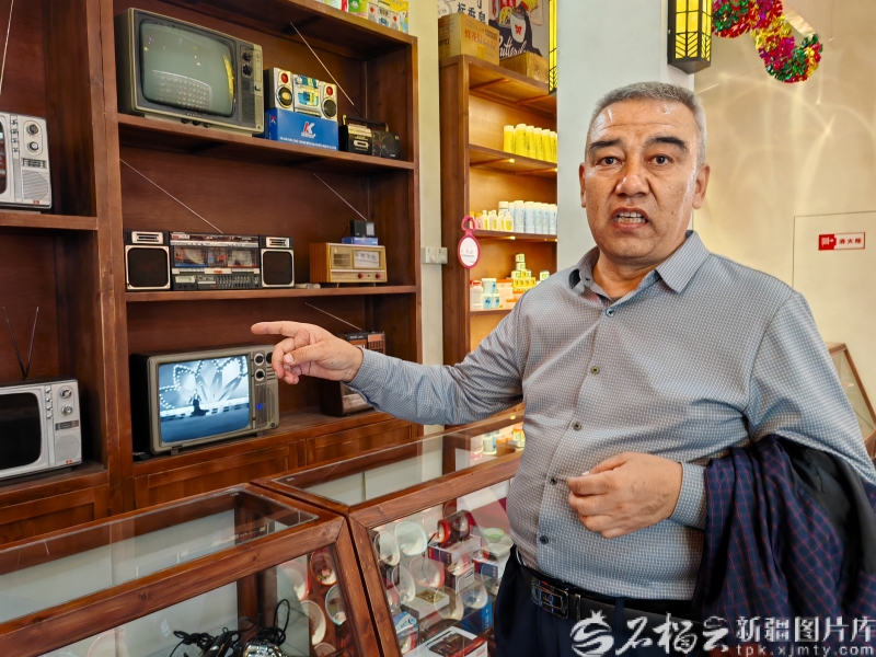 10月2日,观众于祥云在“天山百货大楼”柜台前参观展品。石榴云/新疆日报记者 逯风暴摄 “看到这个柜台,记忆一下跳回当年的场景。”84岁的观众于祥云在乌鲁木齐生活了60多年,20世纪80年代的场景历历在目:“那时候大家爱逛天山百货大楼,这些电视机、收音机、脸盆等,我都用过,现在家里还有一些老物件呢。” 天山百货大楼是20世纪80年代乌鲁木齐最大的商场,它屹立在乌鲁木齐市天山区,与热闹的乌鲁木齐人民广场相邻。百货大楼内,商品琳琅满目,从柔软的毛衣到精致的皮鞋,再到充满新疆特色的馕饼和地毯,无不让人流连忘返。 复原的“天山百货大楼”柜台内,摆放着热水壶、铝饭盒、电视机、录音机、手表、布鞋等物。对乌鲁木齐市民而言,它不仅是一个购物场所,更是一个回忆之地。