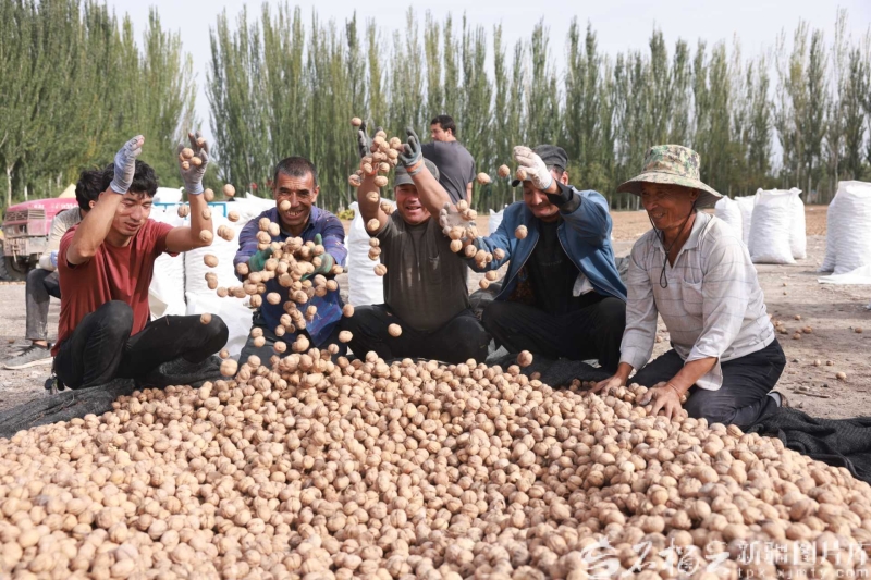 9月,温宿县托乎拉乡核桃晾晒基地,农民们正在分享丰收的喜悦。温宿县融媒体中心供图 “缺衣少食的生活一去不复返了。”前来观展的乌鲁木齐市民王浩说,一组组照片记录着新疆的时代变迁,是党和国家的好政策,让新疆没有在全面建成小康社会的道路上掉队。 和田地区皮山县桑株镇库木艾格勒村村民领到3.8万元农产品销售款、伊犁哈萨克自治州尼勒克县大力发展渔业养殖,吸纳贫困户参股获得稳定收入……展览中的一张张照片记录着村民们幸福的笑脸,也定格了一个幸福的时代。 新疆曾是全国贫困面最大、贫困程度最深的地区之一,党的十八大以来,全区上下坚持把脱贫攻坚作为第一民生工程,尽锐出战、精准施策、接续奋斗,坚决贯彻精准扶贫精准脱贫基本方略,紧扣“两不愁三保障”,落实“六个精准”,扎实推进“七个一批”“三个加大力度”,新疆贫困地区群众出行难、用电难、上学难、看病难等老大难问题普遍解决,义务教育、基本医疗、住房安全有了保障,脱贫群众切实感受到了祖国大家庭的温暖。 脱贫摘帽不是终点,而是新生活的起点。脱贫攻坚补齐了发展的短板,新疆各族群众正用勤劳的双手,开创更加幸福美好的未来。 伽师县曾是国家级贫困县,近年来,当地因势利导实施优势资源转换战略,充分发挥当地土壤气候等资源优势,打造集新梅分拣、储存、保鲜、冷冻、冷链物流、交易、研发为一体的产业链条,推动伽师新梅产业实现产学研一体、一二三产融合发展。 今年8月,伽师县米夏乡吐格巴斯特村村民麦麦提·萨依提的10亩新梅果园,在50余名客商激烈竞逐下,最终以65万元高价成交,折合每亩收益6.5万元,再次刷新当地新梅身价,充分体现了市场对伽师新梅的认可。