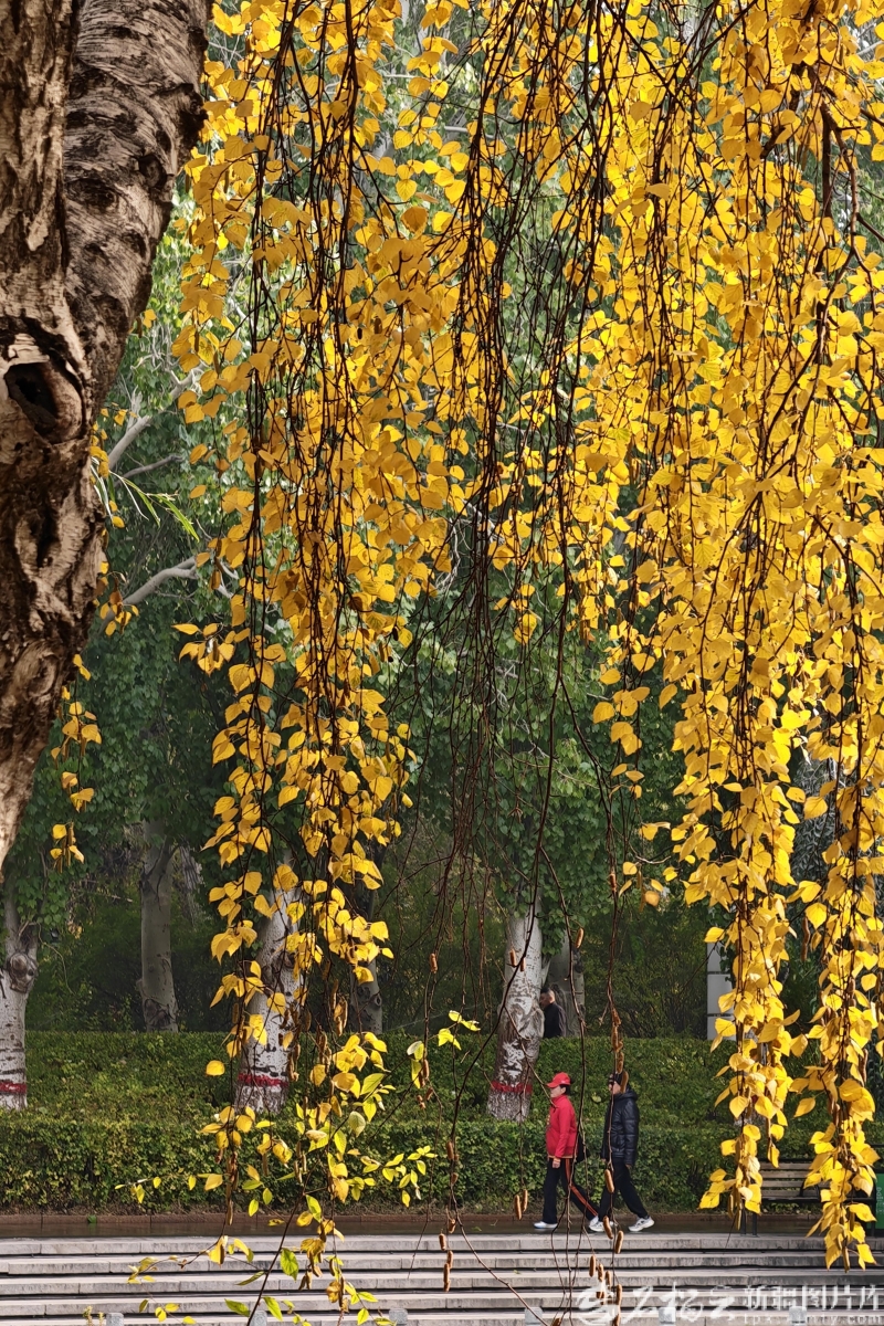 10月23日,市民在乌鲁木齐市人民公园的步道上散步。 石榴云/新疆日报讯(记者 蔡增乐摄影报道)10月23日,霜降节气,乌鲁木齐市街道旁、公园里,杏、杨、柳、枫等树木披上金黄、火红与深绿交织的外衣,将乌鲁木齐点缀得如诗如画,为秋天留下了浓墨重彩的纪念。