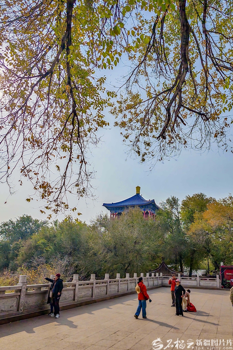 10月23日,市民在乌鲁木齐市人民公园的步道上散步。