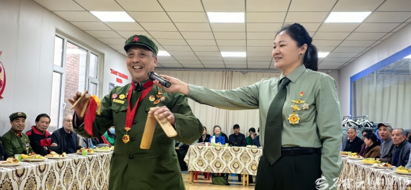 10月27日,在乌鲁木齐市水磨沟区北山社区,老兵梁开元表演快板。桑苇摄 分享亲身经历、快板表演、众人合唱……10月27日下午,在乌鲁木齐市水磨沟区北山社区,由乌鲁木齐市退役军人事务局、水磨沟区退役军人事务局以及水磨沟区委社工部联合主办的“银龄话变迁·重阳颂华章”座谈会举行。 活动现场,社区退役军人代表、老党员代表以及80余位社区高龄居民齐聚一堂,共同畅谈新疆70年来的沧桑巨变。 活动以《我们新疆好地方》等歌曲开场,大屏幕播放了新疆城市变迁老照片,现场“时光留言墙”供参与者写下对新疆发展的寄语。 “老兵、老党员通过分享经历找到了共鸣,年轻志愿者在服务过程中了解了历史,不同年龄层的居民因共同的主题走到了一起,社区的情感纽带会更加紧密。”水磨沟区社会工作指导服务中心主任桑苇说,让社工服务既有温度,又有深度,既能解决老人当下的需求,也能为社区留下有价值的文化记忆。