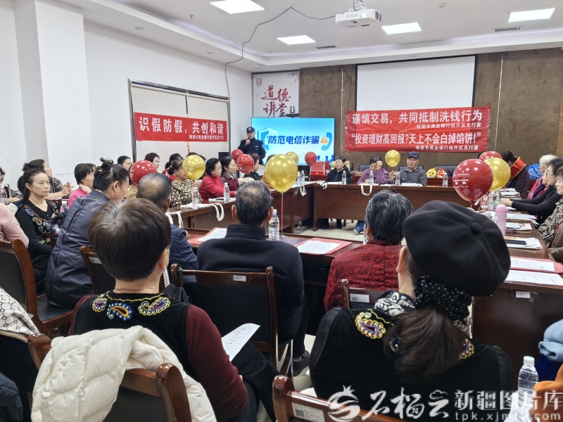 乌鲁木齐经开区(头屯河区)高铁街道香山街社区联合辖区警务站开展了一场防电信诈骗宣讲。警务站民警通过剖析真实案例、传授实用防骗技巧,帮助老年人提升财产安全意识。为让知识普及更有趣味,活动设置防诈骗有奖抢答环节,答对的老人可获得“抓鸡蛋”机会,老人们积极举手、踊跃作答。