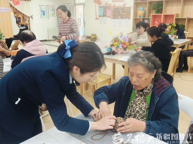 10月27日,乌鲁木齐经开区(头屯河区)火车西站街道西园街社区,辖区老人正在学习手工制作。李瑞霞摄