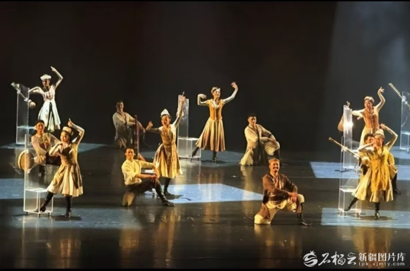 第十五届中国舞蹈“荷花奖”舞台上,乌鲁木齐市艺术剧院带来的群舞《时间的声音》惊艳亮相。(演出方供图) 舞台上,身着传统民族服饰、手拿各种乐器的舞者,在看不见的“画框”中舞蹈,让画作“动态展示”,悠扬婉转的萨塔尔琴旋律与舞者刚柔并济的舞步交织共鸣,既生动刻画了木卡姆艺术传承者的鲜活群像,更串联起一代代人挖掘、保护、传承这一优秀传统民族文化的奋斗历程,让观众直观感受到木卡姆艺术背后绵长的人文力量。 “画作本无声,木卡姆艺术却传唱至今;时间本无语,辽阔的土地却深深镌刻下传承者们的足迹。”编导张慧介绍,作品的核心立意是展现中华优秀文明的代际传递,年轻一辈正用生命延续文化火种。这一理念融入舞蹈编排的每一个细节:舞者通过富有层次的动作,从民间艺人的坚守到现代保护者的深耕,完整呈现了木卡姆艺术的传承脉络,向这一被联合国教科文组织列为“人类非物质文化遗产”的艺术瑰宝致以崇高敬意。 作品巧妙嵌入一段珍贵的历史记忆:1951 年,受文化部、民委委派,万桐书夫妇携幼女远赴新疆,投身木卡姆艺术抢救保护工作的片段,通过舞者饱含情感的演绎被细腻呈现,让观众深刻体会到文化遗产流传至今背后,一代代守护者的默默付出。 《时间的声音》不仅以艺术之美征服了现场观众,更清晰传递出深刻立意:人类宝贵的文化遗产从不是博物馆里封存的标本,而是被无数人用生命灌溉、代代相传的文明根系。