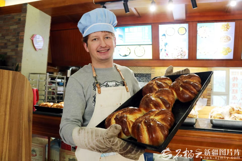 海凯夫展示做好的糕点。本人供图 2019年,从大连交通大学毕业的海凯夫,回到家乡塔城,接过家族的非遗传承接力棒,让塔塔尔族糕点的香甜,成为串联各民族情谊的纽带。 “塔塔尔族糕点不仅是舌尖上的美味,更是承载文化与情感的载体。”谈及返乡初衷,海凯夫坦言,最初只是想帮父母分担压力,可真正接触糕点制作后才发现,小小糕点里藏着大意义,它不仅是非遗技艺的延续,还是让更多人读懂新疆各民族故事的窗口。 为让非遗传承更具活力,2021年,海凯夫创新推出民族团结糕点课堂。活动中,员工会轮流讲述本民族饮食习俗,再携手研发融合风味新品,让各民族的文化在碰撞中开出创意之花。 此前几年,他还带着团队走进学校、社区,举办30余场非遗体验活动;后来为扩大规模,又打造研学基地,邀请大家走进百年老院,在制作糕点过程中感受中华文化魅力。 “虽然是一块糕点,但意义不同。”海凯夫说,每次看着孩子们捏出创意十足的糕点,就知道文化认同的种子已经种下。 2021年,对海凯夫和这份甜蜜事业而言,是意义非凡的一年。这一年,塔塔尔族传统糕点制作技艺成功入选国家级非物质文化遗产代表性项目名录。他带领团队对传统技艺进行系统性整理,制定标准化生产流程,确保每一块糕点都保留最纯正风味。同时,注册多个商标,两次升级产品包装,开发出多种融合多民族饮食特色的创新产品。 百年老院里的甜蜜事业,正以最质朴的方式,书写着“中华民族一家亲”的生动篇章。 “一人富不算富,大家富才是真的富。”这是海凯夫常挂在嘴边的话。来自于田县的吾瓦尔汗·忙力克是这里的员工代表,原本她在塔城市有份安稳工作,但因为对烘焙感兴趣,便来店里应聘。刚来时没有任何糕点制作经验,在海凯夫耐心指导下,她不仅掌握烘焙制作技艺,在和其他同事的相处中,也愈发自信。如今,吾瓦尔汗已成为技术骨干,月收入超过5000元。 “现在糕点能发快递,店铺也开到成都、上海等地。”海凯夫说,6年来,企业已先后培养出20余名创业能手,其中12人独立开店,他们又带动更多人就业,让这份甜蜜事业形成“就业——创业——再就业”的良性循环。 秉持着要像爱护眼睛一样爱护民族团结的信念,海凯夫正在筹建民族团结非遗产业园,计划打造集技艺传承、文化体验、研学旅游于一体的综合性平台,为促进各民族交往交流交融提供新载体。 “文化传承和民族团结就像面团和水,充分融合,便能发酵出最美好的味道”。海凯夫说,他和团队用实际行动证明,非遗传承是铸牢中华民族共同体意识的重要纽带,各族群众正像石榴籽一样紧紧抱在一起,在传承文化、发展事业的路上,共同创造更甜蜜的生活。
