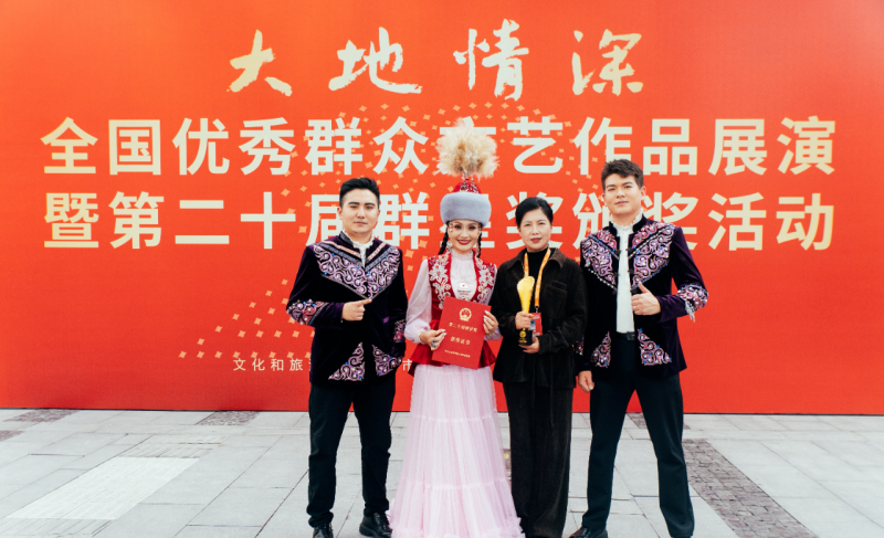 《青川河》主创人员合影留念。伊犁哈萨克自治州文化馆供图 “青川河呀我的家乡,我要永远为你歌唱……”当冬不拉琴弦拨动,清澈的女声在颁奖现场响起,一首《青川河》在第二十届群星奖的舞台上赢得热烈的掌声。伊犁哈萨克自治州文化馆馆长唐志春难掩激动地说:“获奖了,这是新疆近十年来首次获得这项群众文艺领域的最高奖项。” 《青川河》是在保留民歌旋律与精神内核的基础上,进行音乐制作与编配的再创作。音乐编导及音乐设计阿曼·奥巴克尔介绍,“青川河”并非指某一条具体河流,而是对伊犁河及其众多支流的统称,承载着对故土山河的热爱与眷恋。该作品自2024年7月启动舞台化打造,在首届中国新疆民间艺术季亮相,并在疆内外开展近50余场巡演。