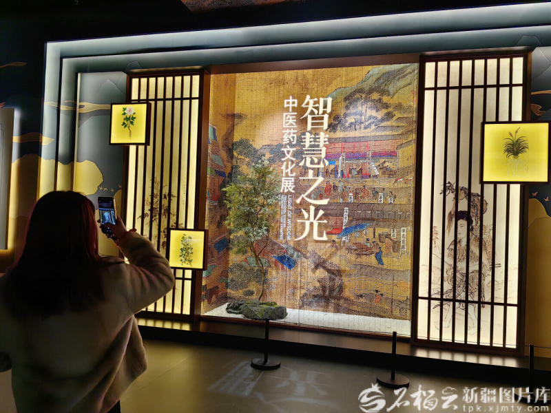 11月8日,在新疆博物馆,市民在“智慧之光——中医药文化展”前拍照打卡。 石榴云/新疆日报讯(记者 李雄心摄影报道)“这是我首次参观中医药文化展,真是收获颇丰。”市民李霞说。11月8日,是新疆博物馆“智慧之光——中医药文化展”开展的第四天,正值周末高峰时段,吸引了众多游客及市民前来参观。 “我就住在附近,听说正在举办中医药文化展,就和家人一起过来看看。真是不错,中医药文化知识介绍得特别全面,还能买到各种新奇的文创产品。”市民高女士点赞道。