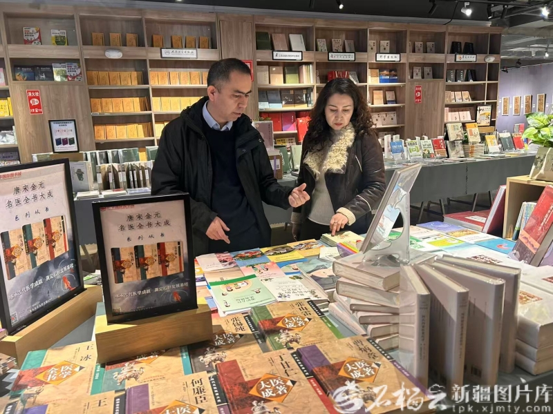 11月7日,新华国际图书城4楼的中医药精品图书展览开幕现场。石榴云/新疆日报记者 阿比拜摄 该展览由中国出版协会中医药出版工作委员会主办,新疆人民卫生出版社、新疆新华书店发行有限责任公司承办。展览涵盖经典古籍、临床诊疗、大众健康、学术研究等多个领域,为新疆读者献上一场兼具专业性与普及性的中医药文化盛宴。 “这既是全国中医药出版成果的集中展示,更是中华优秀中医药文化传播的重要契机。”中国中医药出版社副社长李淳介绍,参展书籍既包含多项图书奖项获奖精品,也有贴合日常健康需求的实用读物。“我们希望以展览为纽带,助力新疆中医药事业发展,借‘一带一路’合作东风,让中医药文化走进中亚、惠及更多民众,同时为新疆优秀中医药成果走向全国、走向世界搭建桥梁。”