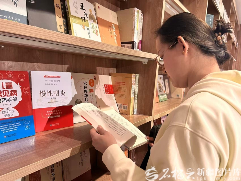 11月7日,新华国际图书城4楼的中医药精品图书展览区内,读者正在看书。石榴云/新疆日报记者 阿比拜摄 新疆医科大学大三学生王臻便是其中一员,“我一直四处寻觅《新中国地方中草药文献研究》这本专业参考书,很久都没找到,没想到在这次展览上如愿以偿了。”他说,这类专业主题展览书籍覆盖面广、针对性强,既满足了学习科研需求,也让自己得以接触中医药领域前沿成果,收获颇丰。