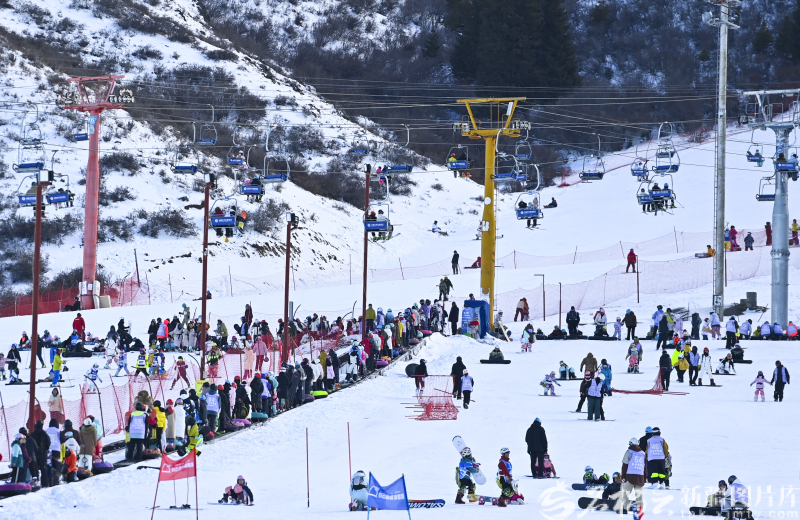 12月1日,白云滑雪场上人头攒动。 石榴云/新疆日报讯(记者 汤永摄影报道)12月1日,乌鲁木齐县水西沟镇白云滑雪场雪浪翻涌、欢笑满溢。雪道上,滑雪爱好者御风疾行,更吸睛的是身着彩色滑雪服的孩子们——他们在教练指导下认真练习,成为雪场最灵动的风景。