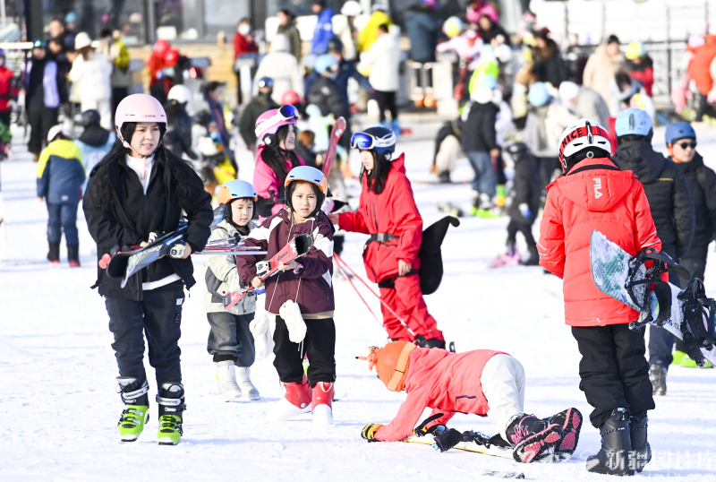 12月1日,前来白云滑雪场滑雪的家长和孩子。