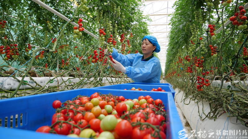 11月28日,霍尔果斯现代农业科技产业园,员工正在采摘成熟的番茄。永程帆摄