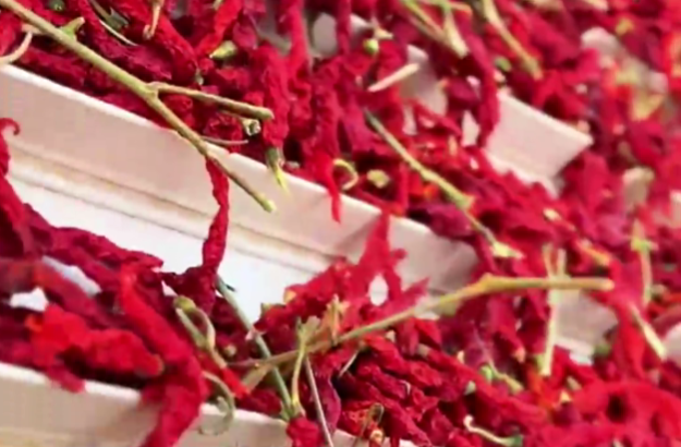 视频截图 红彤彤的辣椒晾晒场面 引得不少网友赞叹 还有网友现身“种草” 夸赞新疆辣椒好吃不辣