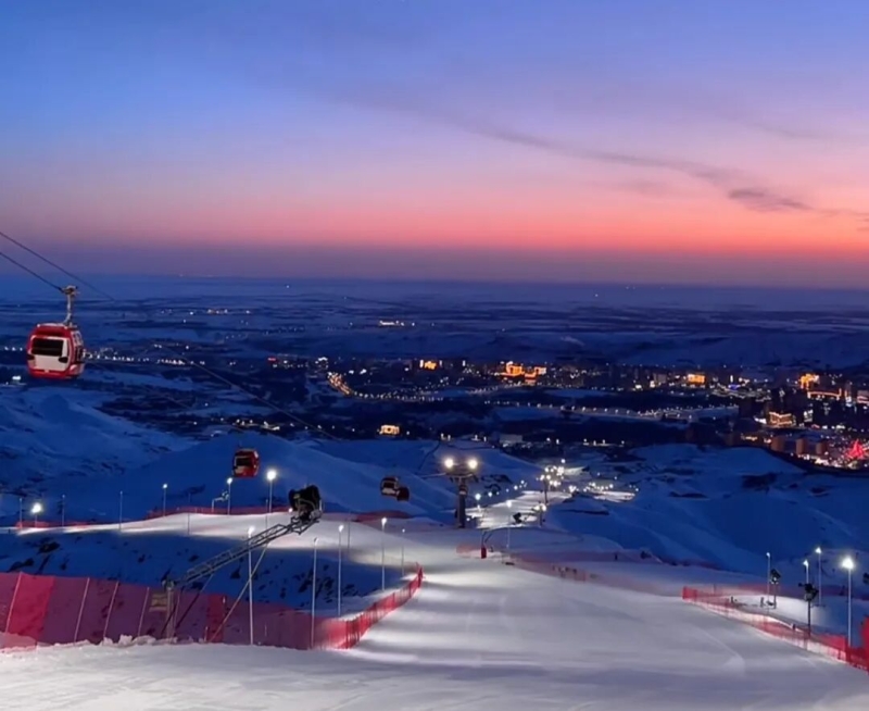滑雪场雪道层次分明,适合从新手到高手的各级别雪友。最不能错过的是它的夜场,在璀璨的都市灯火之上滑行,是一种独一无二的浪漫。这里配套设施成熟,餐饮、住宿选择多,更像一个充满活力的“滑雪社区”,非常适合作为初次体验,阿勒泰冰雪之旅的第一站。