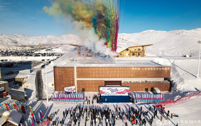 12月12日,2025新疆热雪节世界野雪巡回赛(FWT)开赛仪式现场。(无人机摄)
