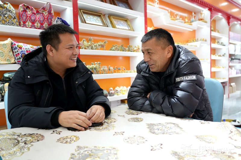 曾荣和邻居艾斯卡尔·艾维再力在聊天。孟霞 摄 这份温情,同样流淌在新老街坊之间。湖南人曾荣的“三胖果业”干果店,一边挨着摆秀珍奶奶家,另一边是艾斯卡尔·艾维再力经营的百年老屋美食餐厅。日常里,一碗分享的美食,一次及时的搭手,便是他们之间无声的言语。今年10月,曾荣夫妇回老家探亲,临走前艾斯卡尔·艾维再力拍着他的肩膀说:“老弟,你们放心回,店里有事就吭声,我在这儿呢!”艾斯卡尔·艾维再力的爷爷曾讲起20世纪30年代的街景:天津人卖茶叶,维吾尔族匠人打铁具,俄罗斯人卖糖果……各民族比邻而居,和睦经营。如今,这份和谐以新的方式延续着,就像街口那棵老榆树,枝叶伸向不同的方向,根脉却紧紧相连。 从受助者到施助者 各民族紧紧抱在一起 受到邻里滋养的人,也自然而然地成为了滋养他人的人。宫瑞明从那年出差回家后,便开始定期帮助街坊里生活困难的家庭。如今,他每个月都会按时拿出5万多元,用于资助105户困难人家。他家橱柜里摆满的锦旗上,“民族团结 情深意长”“无私援助 冬日暖阳”“雪中送炭 恩重如山”等烫金大字格外醒目。“看到一些孩子顺利考上大学,参加工作,有能力照顾家里、帮助别人后,我特别高兴。”宫瑞明由衷地说,“现在,这条街早已成了我的根。” 从湖南来此定居的曾荣,心里也积攒着一份特别的温暖。创业初期生意艰难时,他的乌孜别克族房东马合木提·巴巴汗主动免去了半年房租,安慰他“安心做生意”。这份跨越民族的关爱,被他转化为对街坊的回馈。他的店铺优先招聘邻里大学生,当一位维吾尔族店员的孩子身患重病时,他不仅拿出一万元应急,还为她保留着岗位。“我们虽然是不同民族,但心却是相连的。这些年,左邻右舍都成了我的亲人。”曾荣说。 从受助者到施助者,爱的循环在这条老街上生生不息,个人的善行如涓涓细流,汇聚成滋养整条街区的温暖海洋。 百年老街旧事多,新故事也不少。今年春天,年轻的创业者牛光社和阿不都外力·克里木在前进街合伙开了一家民宿,并把打馕、手绘葫芦、民族乐器表演等体验项目融入民宿日常经营,用年轻人的力量推动老街向新而行,继续书写着街坊邻里之间那份质朴而温暖的烟火深情。 从一声唱腔到一客甜点 老街释放无限活力 在前进街,文化融合并非刻意的营造,而是生活与情感自然流淌出的和鸣。它既响在悠扬的乐曲中,也藏在飘香的甜品里,成为老街烟火气里一抹别样的亮色。 12月26日,麦尔哈巴·买木提明在街巷里唱起融入京剧腔调的《说唱脸谱》。李剑 摄 街巷深处,维吾尔族姑娘麦尔哈巴·买木提明一开嗓,总能吸引游客驻足。她最爱唱的是那首融入京剧腔调的《说唱脸谱》。“蓝脸的窦尔敦盗御马……”当浑厚昂扬的曲调一经她唱响,台下总会先是一静,继而爆发出热烈的掌声。她对这首歌的痴迷始于多年前,一句句模仿,一点点揣摩,直到第一次登台表演时,她感觉自己“和歌曲融为了一体,血脉都在沸腾”。更妙的是,如今,她和几位当地年轻人一起,用热瓦甫和手鼓为这首京韵歌曲伴奏。维吾尔族乐器的欢快节奏与传统戏曲的深厚韵味交织,创造出独一无二的旋律,让走过的游人忍不住跟着扭动腰身、打起节拍。这首歌,连同身着艾德莱斯裙的麦尔哈巴·买木提明闪闪发光的身影,通过无数游客的手机传向远方,成为前进街一张动人的文艺名片。 融合的滋味,也沉淀在街角的甜品香里。梁木琼的娜娃丽甜品店中,各族员工常聚在一起“突发奇想”。他们把少数民族钟爱的奶皮子糅进蛋糕,制出奶香浓郁的千层蛋糕;将回族酸饺子里的杏酱减半,做成酥脆可口的羊角酥;又把俄罗斯族的“恰克恰克”、塔塔尔族的“巴哈力”调整配方,做成更符合大众口味的清新茶点。这些“多民族风味融合”的新式点心,既留住了传统的魂,又添加了创新的味,不仅当地人爱吃,更通过网络飞向全国,引来订单无数。如今,这家甜品店增开了3家分店,雇有各族员工30余人,“甜蜜事业”在融合中越做越大。