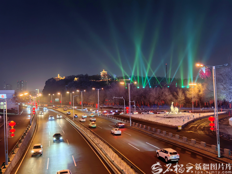 1月1日晚,乌鲁木齐市红山公园美轮美奂的灯光夜景。
