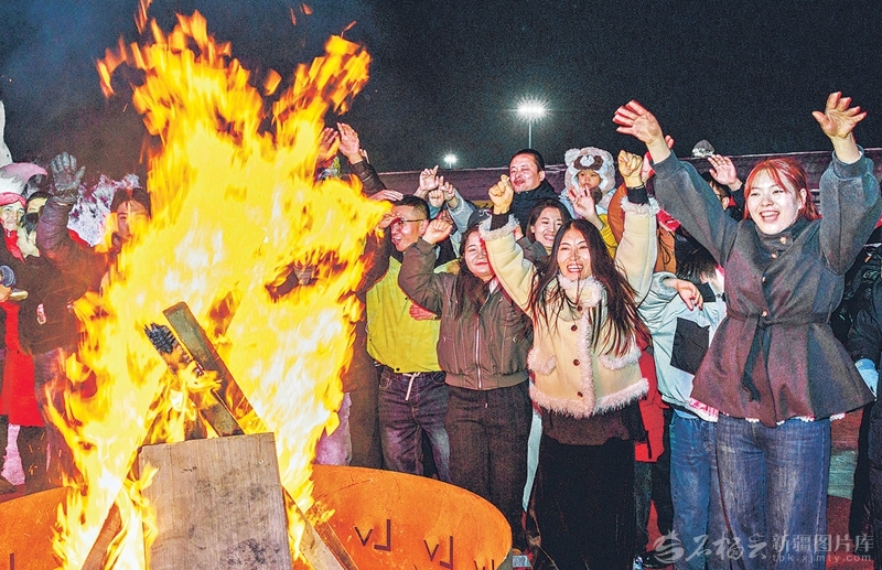1月13日晚,乌鲁木齐市水磨沟区天山明月冰雪城,游客围着篝火载歌载舞。孙振嵩摄 新疆,正将“冷资源”化作“热产业”。人们不再畏惧严寒,还邀请八方来客,一起在冰雪中挑战自我,感悟独有的乐趣,收获着别样的人生经历。在缤纷的冬日新疆,开启一段段难忘的冰雪奇缘,让冰天雪地生机盎然,诉说着一年之计在于“冬”的新冬季。