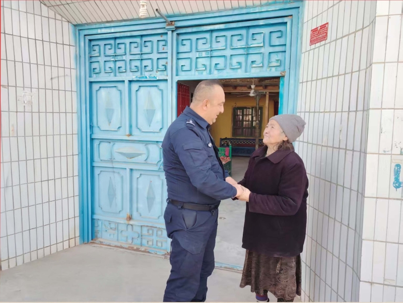 1月14日,民丰县公安局城镇派出所副所长玉散江·麦提赛伊迪与老人握手道别。通讯员 陈子朝摄 石榴云/新疆法治报讯(记者 韩晋 通讯员 陈子朝报道)1月14日,民丰县南苑小区门口,一位七旬老人紧紧攥住民丰县公安局城镇派出所副所长玉散江·麦提赛伊迪的手道谢:“感谢人民警察!你们是我的亲人。”这份感谢源于民辅警帮助老人搬运了一吨的燃煤。 当日,城镇派出所巡逻警力在辖区巡逻,行至南苑小区时被一位神色焦急的老人拦住。民警立刻询问,得知老人刚领取了社区免费发放的一吨过冬燃煤,可工作人员忙于给各家各户办理集中发放手续,无暇分身,这堆煤如何搬回家,成了难题。 民警立即向派出所反馈这一情况。副所长玉散江得知老人困境后,当即组织带领多名民辅警携带搬运工具赶往燃煤发放点。大家挽起衣袖迅速分工:有的负责装袋、有的负责搬运、有的负责上门堆放,整套流程有条不紊、干脆利落。