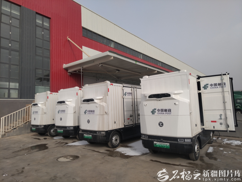 1月20日,中国邮政集团有限公司喀什地区分公司二级邮区中心的4辆无人快递车。  徐强摄