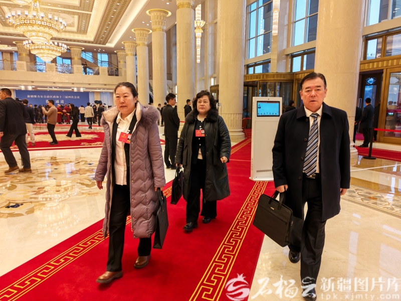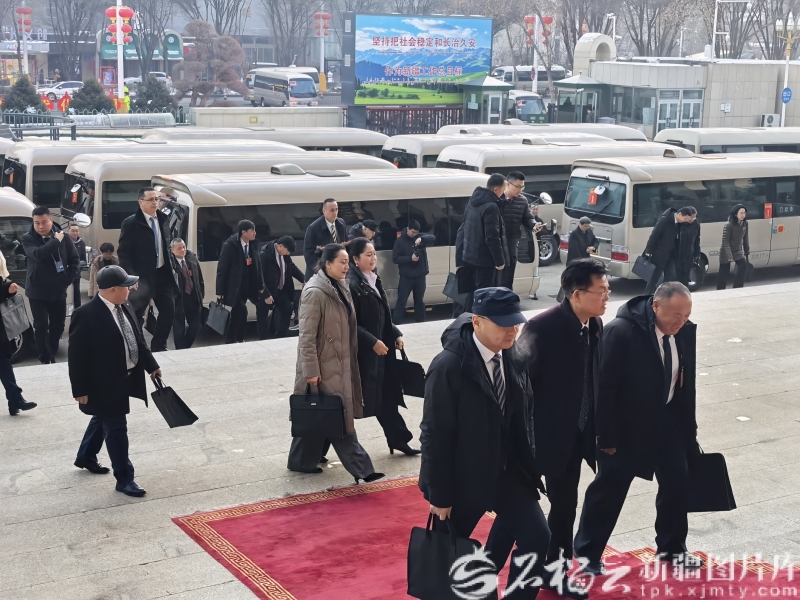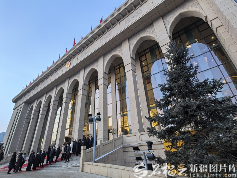 1月26日上午,出席自治区政协十三届四次会议的政协委员步入新疆人民会堂。‍石榴云/新疆日报记者 秦梅花摄