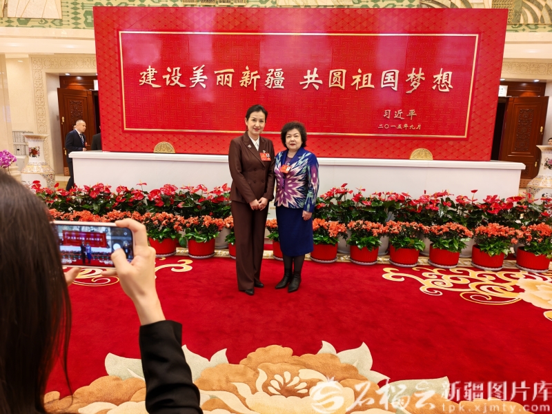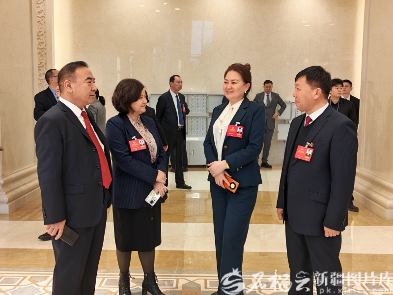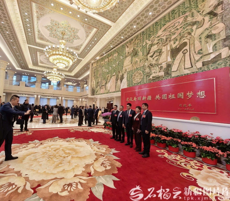 1月26日上午,出席自治区政协十三届四次会议的政协委员在新疆人民会堂大厅交流。石榴云/新疆日报记者 秦梅花摄