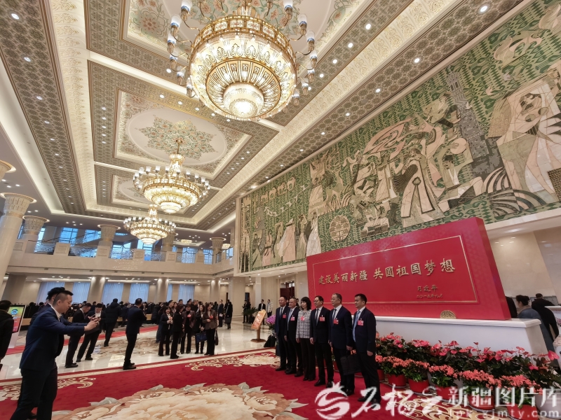 1月26日上午,出席自治区政协十三届四次会议的部分政协委员在新疆人民会堂大厅合影。石榴云/新疆日报记者 秦梅花摄