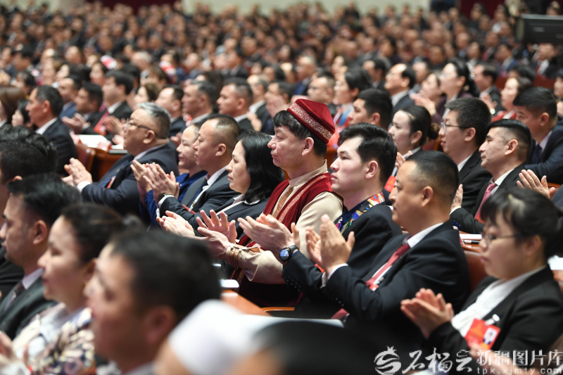 1月27日,自治区十四届人大四次会议在新疆人民会堂开幕。图为会议现场。石榴云/新疆日报记者 汤永摄